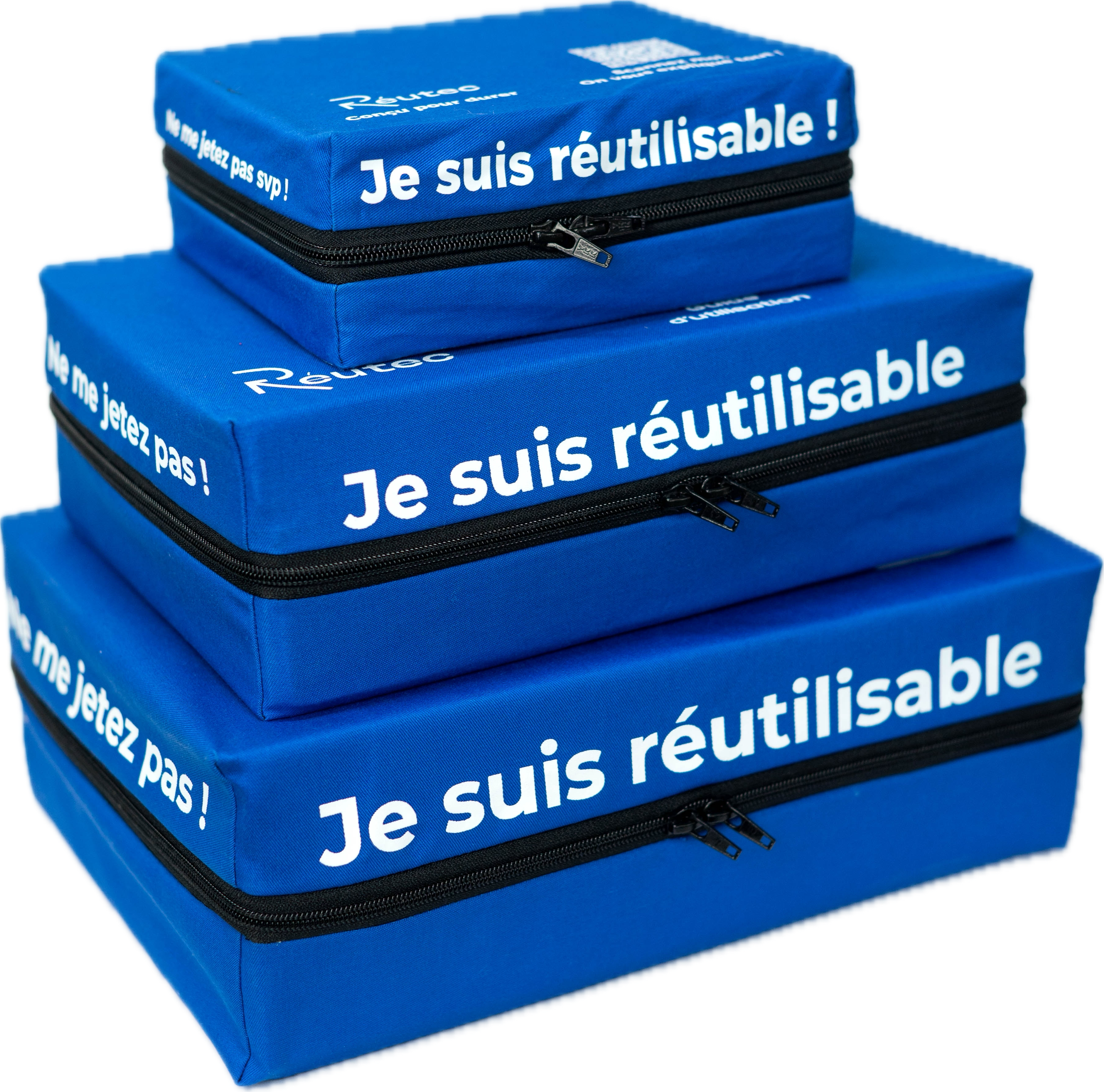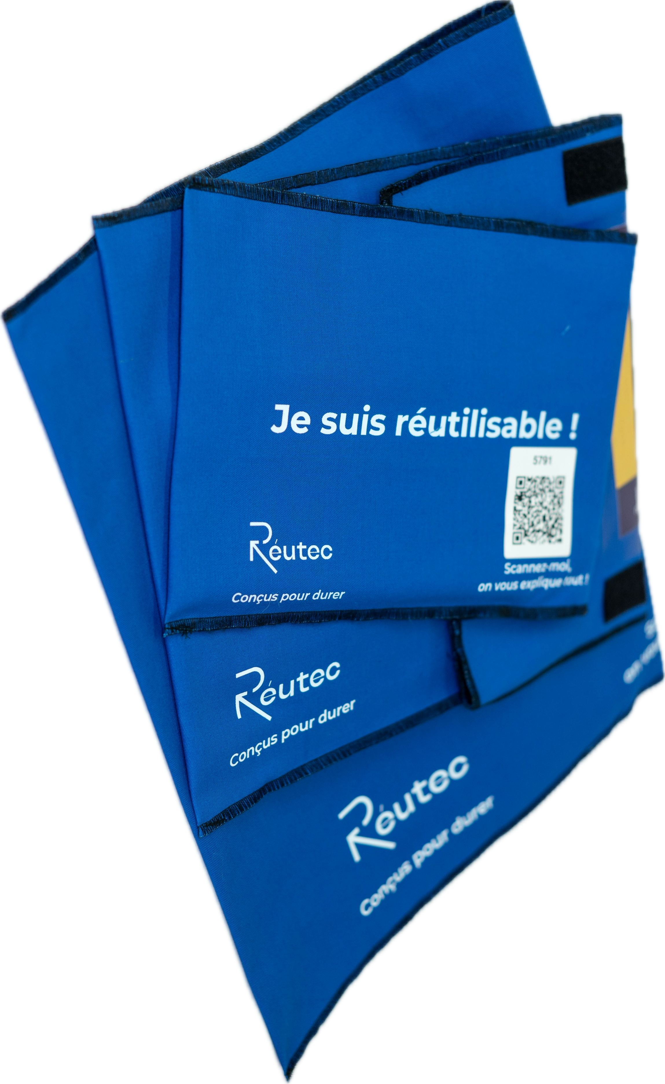 Pour que le système fonctionne à grande échelle, chaque emballage doit être identifié de manière unitaire, fiable et durable. Au départ, Réutec imprimait les QR codes directement sur le textile. Une méthode vite abandonnée, car difficile à maintenir, peu réparable et techniquement complexe.